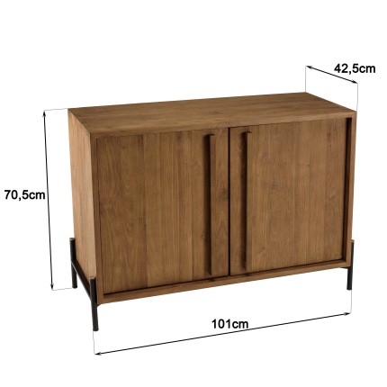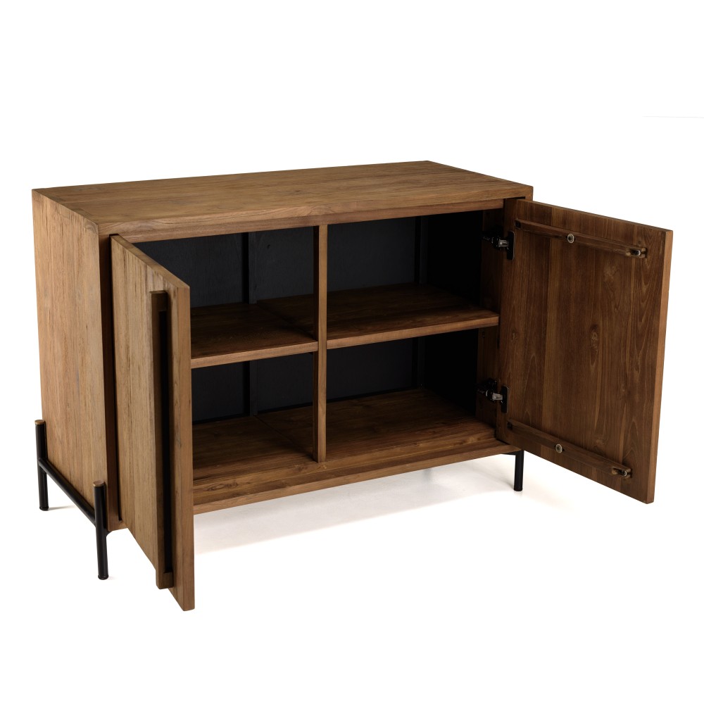 Buffet 2 portes en bois de teck recyclé pieds en métal noir. Dimensions : 101 x 42.5 x 70.5 cm. Article en Teck recyclé/Acier.