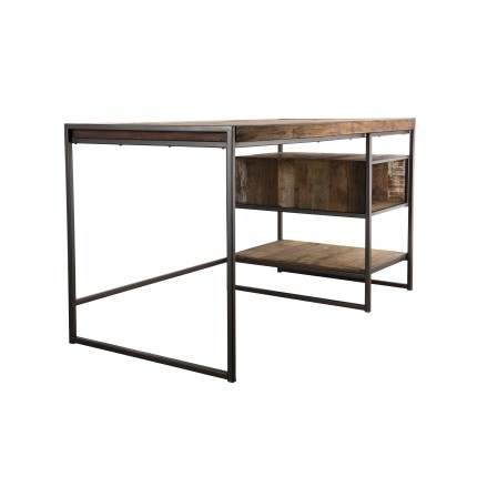 Bureau marron 1 niche et 1 tablette Teck recyclé Acacia Mahogany recyclé et métal noir. Dimensions : 140 x 70 x 78,5 cm. Article en Teck recyclé et Acacia, Mahogany recyclé.