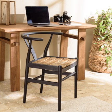 Composées de teck recyclé et d’abaca, ces chaises noires sont totalement dans l’air du temps grâce à leur assise arrondie.