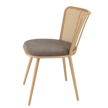 L'assise en tissu taupe et le large dossier en effet cannage apporteront de la luminosité dans votre pièce à vivre.