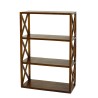 Brown 3-tier Mindi wood shelf with crossbars. Dimensions: 80 x 36 x 120 cm. Made of Mindi and plywood.