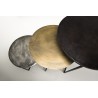 Set of 3 round nesting tables in black, gold, and silver aluminum - black metal legs. Dimensions: 60 x 60 x 59.5 cm. Made of aluminum and metal.