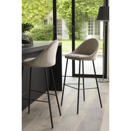 Choose these beige bar stools with their black metal legs to decorate your home. Featuring a velvet seat, they offer a very comfortable seating experience.