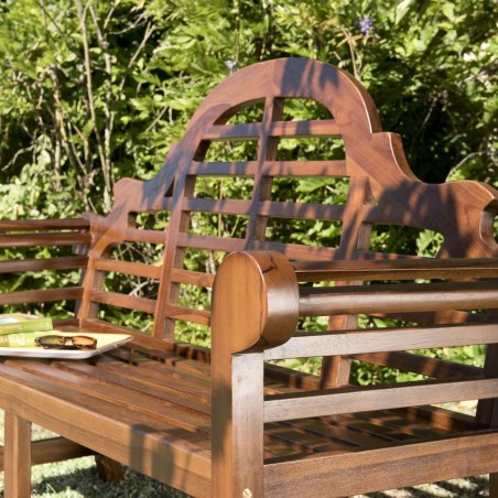 Its highly original design will undoubtedly enhance your garden, patio, or veranda. This bench can accommodate up to 3 people and will allow you to spend pleasant and friendly moments. Its pretty oiled color will complement your outdoor space perfectly.