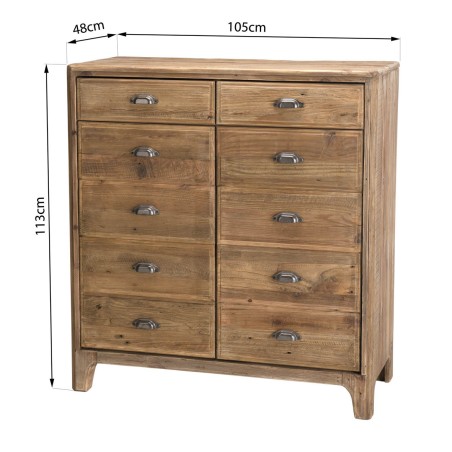 Brown 2-drawer, 2-door cabinet with faux wood drawer decoration. Recycled pine. Dimensions: 105 x 48 x 113 cm. Made from recycled pine.