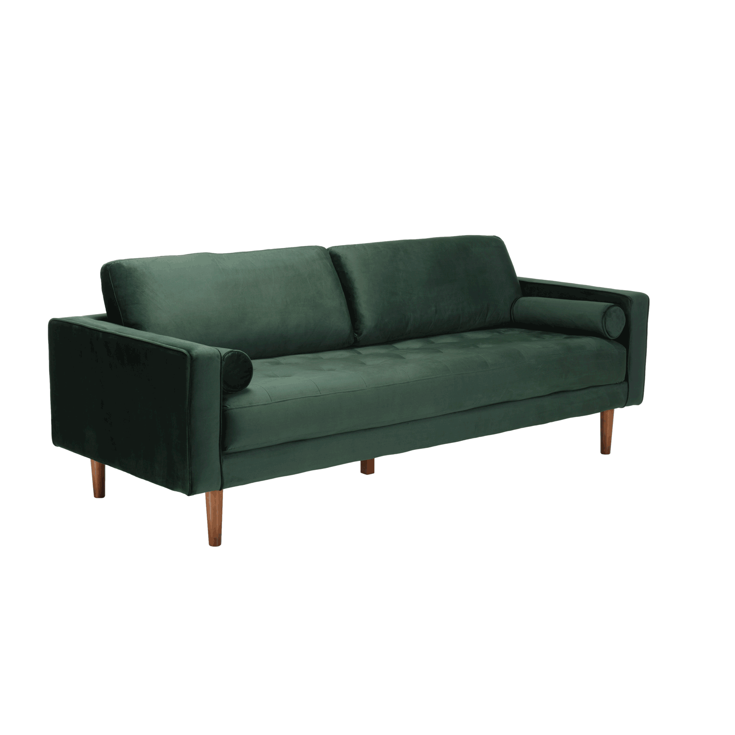 Canapé MADRID 3 places tissu velours couleur vert sapin. Dimensions : 225 x 93 x 90 cm. Article en velours et bois.