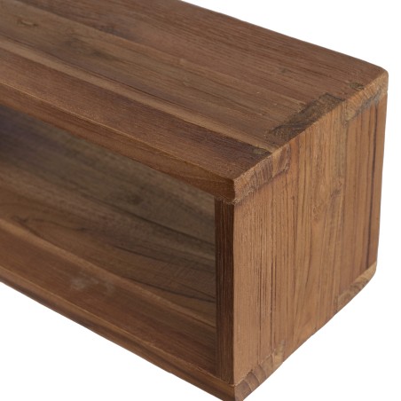 Brown rectangular wall shelf with 2 niches made from recycled teak wood. Dimensions: 75 x 15 x 15.4 cm. Made from recycled teak.