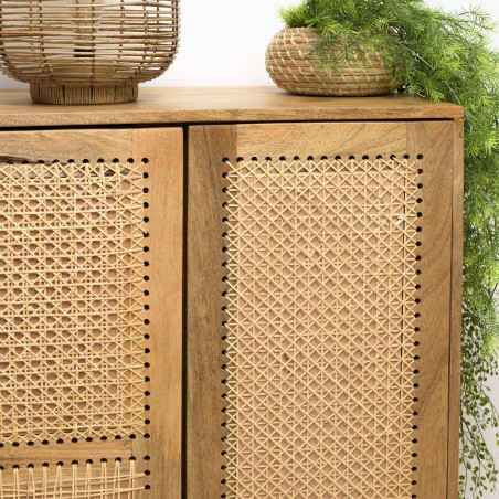Fall under the spell of this sublime wall unit made of mango wood and rattan.
