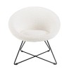White bouclette fabric armchair with black metal crossed legs. Dimensions: 72 x 62 x 71 cm. Made of faux fur fabric/metal.