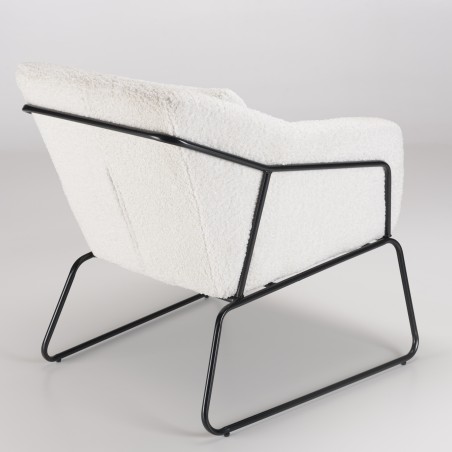 White bouclette fabric armchair with flared black metal legs. Dimensions: 74 x 79 x 80 cm. Made of faux fur fabric/metal.