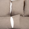 It combines the rustic look of wood with the comfort of its six taupe-colored cushions.