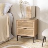 Natural cane bedside table with 2 drawers and black metal legs. Dimensions: 48 x 34 x 56 cm. Made from ash-veneered MDF / Steel / Rattan.