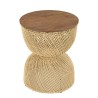 Beige rattan side table with recycled teak top. Dimensions: 41.5 x 41.5 x 50 cm. Item made from Recycled teak/Rattan/Steel.