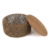 Round coffee table 70x70cm in coconut fiber weave. Dimensions: 70 x 70 x 36 cm. Item made from recycled teak.
