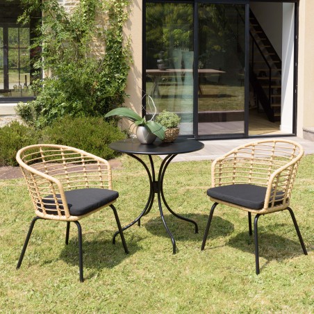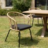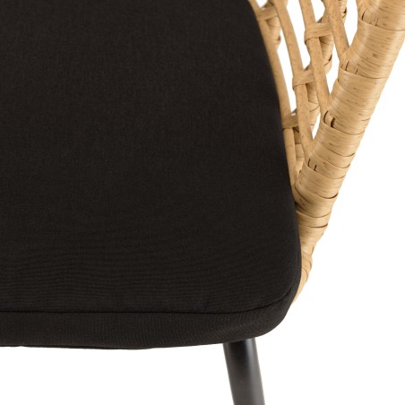 Set of 2 natural-colored synthetic rattan armchairs. Dimensions: 2 x (56 x 61 x 77.5 cm). Items made of Steel/Synthetic rattan/100% polyester fabric.