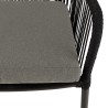 2-PERSON GARDEN FURNITURE SET - Square table 70x70cm and 2 gray and black rope armchairs. Dimensions: (Table: 70 x 70 x 72 cm; Armchairs x2: 55 x 62 x 81 cm). Items made of Steel/Rope/100% polyester fabric.