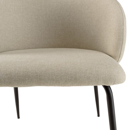 Set of 2 ecru fabric chairs with rounded backs and black steel legs, TOM. Made from Polyester/Steel/PE Foam. Dimensions: 59 x 59 x 78 cm.