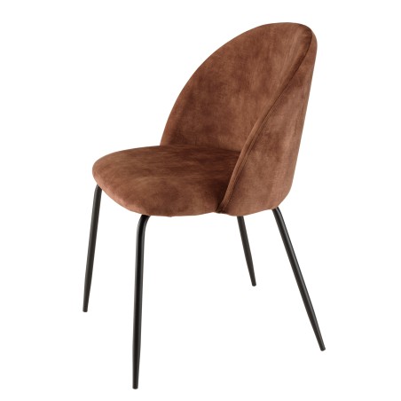 Set of 2 mahogany velvet chairs with rounded backs and black steel legs. TOM. Made from polyester velvet/steel/PE foam. Dimensions: 50 x 55 x 79 cm.