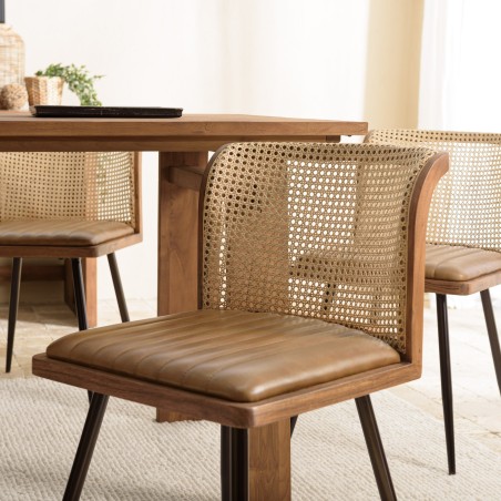 Set of 2 mango wood chairs with padded leather seats and rattan backrest. Made of leather/steel/rattan/polyurethane foam/mango wood. Dimensions: 45 x 54 x 75.5 cm.