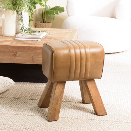 Looking for the perfect stool? Treat yourself to this quilted brown leather stool. Its angled legs add a touch of originality and will fit perfectly with many decor styles.