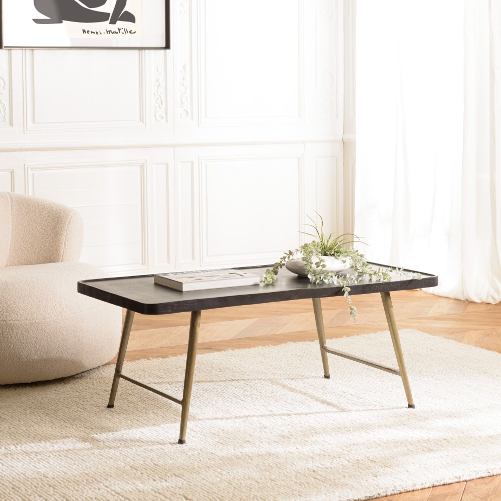 Fall for this rectangular aluminum coffee table. Its golden legs give it finesse and elegance. Its black color particularly highlights it.