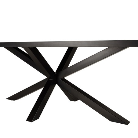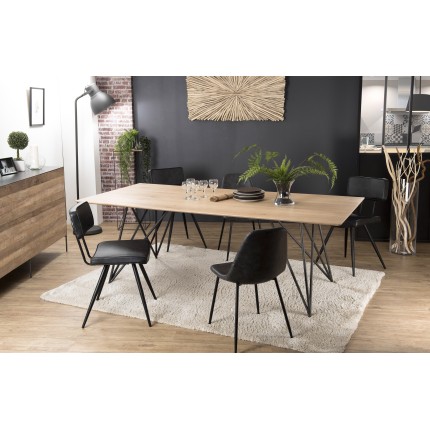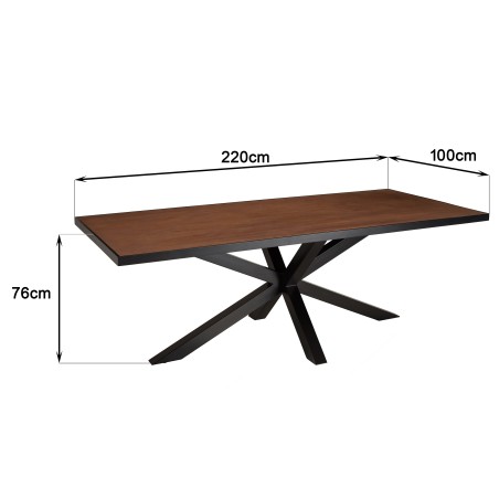 220x100cm rust-colored stone-effect dining table. Dimensions: 220 x 110 x 76 cm. Made of polyurethane-coated MDF/steel.