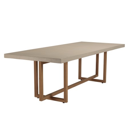 Discover contemporary elegance combined with robustness with our 243 x 100cm rectangular dining table. Its beige concrete top brings a modern and industrial touch, while the crossed teak legs add a warm and natural touch. It will be perfect for welcoming your guests in a refined and friendly setting.