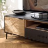 This TV stand creates a warm and authentic ambiance for your living room. The black metal legs add a contemporary touch. It also offers additional storage space with its two doors and a drawer, all in a trendy style.