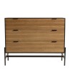 Charlie brown and black 3-drawer pine chest of drawers with black metal legs. Made from melamine/pine/steel. Dimensions: 103.5 x 40.5 x 81.5 cm.