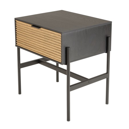 Elegant and practical, this brown and black bedside table combines contemporary style and functionality. With its grooved drawer and black metal legs, it adds a sophisticated touch to your bedroom.