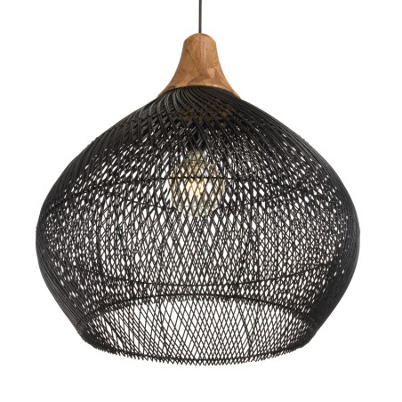 68x68cm "bell" pendant light in black rattan and teak. Made from rattan/recycled teak/steel. Dimensions: 68 x 68 x 70 cm.