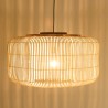 76x76cm "bucket" pendant light in natural rattan and teak. Made from recycled rattan/teak/steel. Dimensions: 76 x 76 x 40 cm.