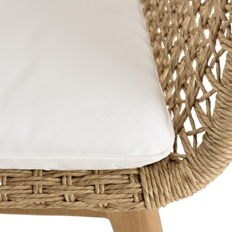 Lot No. 6 Recycled teak and synthetic rattan garden furniture. 8/10 people. Item made of recycled teak/synthetic rattan/teak/polyurethane foam/olefin. Dimensions of armchairs 510613 x4: 59 x 60 x 84 cm / table 510510: 310.5 x 94.5 x 75 cm.