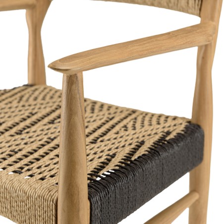 Recycled teak and synthetic rattan garden furniture. 6 people. Dimensions: Armchairs 510605 x3: 56 x 55 x 81 cm / Table 510520: 150 x 150 x 75 cm. Item in recycled teak / synthetic rattan / teak