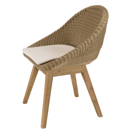 Lot No. 28 Recycled teak and synthetic rattan garden furniture. 6 people. Item made of aluminum/foam/synthetic rattan/teak/recycled teak/100% polyester fabric. Dimensions Chairs 510507 x3: 56 x 60 x 84 cm / Table 510520: 150 x 150 x 75 cm