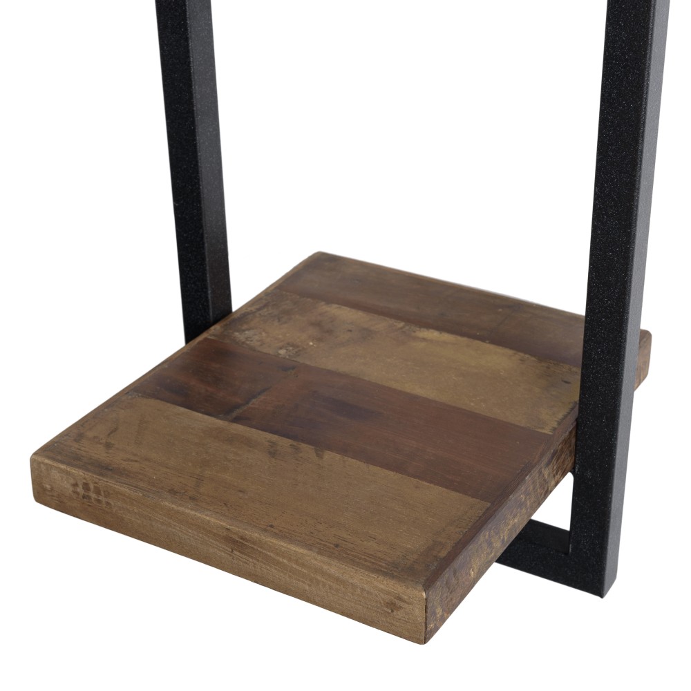 Étagère murale 2 plateaux teck recyclé marron structure métal noir. Dimensions : 25 x 25.3 x 75 cm. Article en Teck recyclé/Acier.