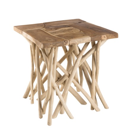 Table d'appoint nature - plateau carré 55x55cm Teck pieds bois flotté. Dimensions : 55 x 55 x 56 cm. Article en Teck.