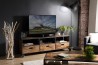 Meuble TV à roulettes marron 3 tiroirs 3 niches teck recyclé et métal noir. Dimensions : 175 x 38 x 58 cm. Article en Teck recyclé et Métal.
