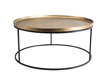 Table basse ronde 88x88cm aluminium doré pieds ronds métal noir. Dimensions : 88 x 88 x 41 cm. Article en Aluminium et Métal.