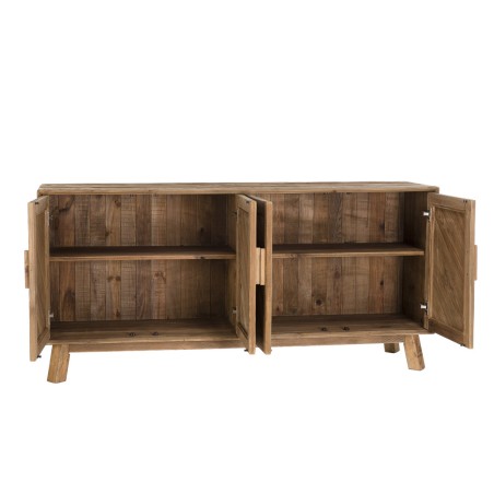 Buffet marron 4 portes bois Pin recyclé détails graphiques. Dimensions : 180 x 47,5 x 85 cm. Article en Pin recyclé.
