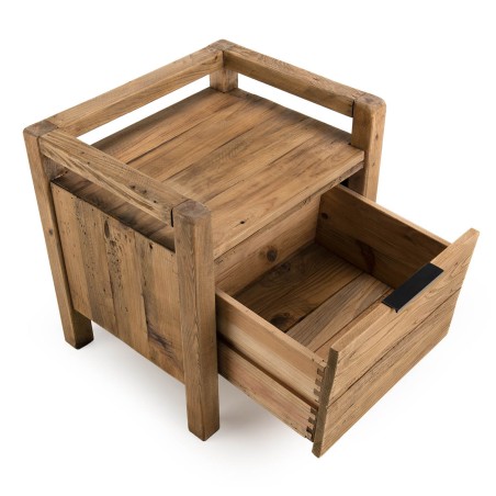 Chevet marron 1 tiroir bois Pin recyclé. Dimensions : 55 x 45 x 55 cm. Article en Pin recyclé.