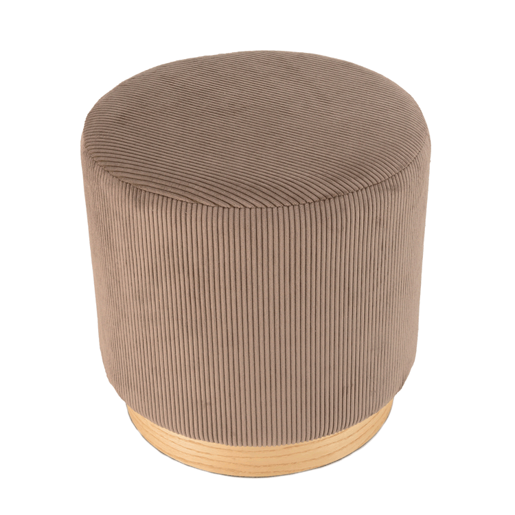 Tabouret rond 40x40cm velours côtelé marron base en bois. Dimensions : 40 x 40 x 40 cm. Article en Tissu Polyester / Nylon / Contreplaqué frêne / Mousse.