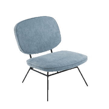 Chaise en velours bleu clair pieds métal noir. Dimensions : 58 x 72 x 72 cm. Article en Tissu velours côtelé /Acier.