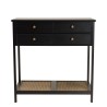 Console noire 4 tiroirs 1 étagère effet cannage. Dimensions : 80 x 38 x 83 cm. Article en Aggloméré Mélaminé/Acier/Contreplaqué.