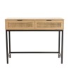 Console 2 tiroirs cannage naturel pieds métal noir. Dimensions : 100 x 40 x 78.5 cm. Article en MDF plaqué frêne/Acier/Rotin.