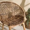 Fauteuil dossier arrondi assise en abaca tressé. Dimensions : 79 x 69 x 83 cm. Article en Teck recyclé/Abaca (chanvre de Manille)/Acier.