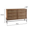 Commode 6 tiroirs en bois de teck recyclé. Dimensions : 150 x 40 x 100.5 cm. Article en Teck recyclé/Acier/Coco.