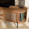Meuble TV arrondi en bois de teck recyclé 2 portes 2 tiroirs. Dimensions : 160 x 44 x 55 cm. Article en Teck recyclé/Acier/Coco.