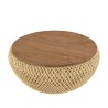 Table basse ronde 65x65cm en rotin beige plateau amovible. Dimensions : 66 x 66 x 31 cm. Article en Teck recyclé/Rotin/Acier.