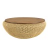 Table basse ronde 80x80cm en rotin beige plateau amovible. Dimensions : 81 x 81 x 32 cm. Article en Teck recyclé/Rotin/Acier.